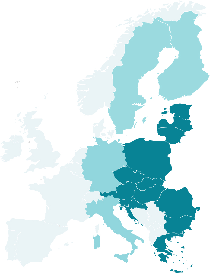 Albania · Bosnia & Herzegovina · Bulgaria · Croatia · Czech Republic · Estonia · Greece · Hungary · Latvia · Montenegro · North Macedonia · Poland · Romania · Serbia · Slovakia · Slovenia